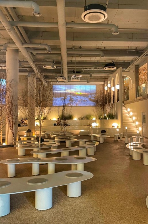 Inside the cafe, four floors boast abundant seating, with most offering uninterrupted vistas of the ocean. However, it is the lower level that presents a stark contrast to the light and airy ambiance found on the other floors. Here, you’ll discover a dark, low-lit forest accompanied by a mirror gallery, which transports you to a realm of enchantment and mystery. In this setting, the interplay of light and shadows creates ample opportunities for capturing extraordinary pictures that are sure to impress your social media followers.