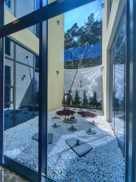 The cafe’s interior features white walls and wooden furniture, creating a natural and comfortable ambiance. Despite having various colored chairs and sofas, the color palette reflects the soothing tones of the sea. It is fitting for a cafe named after Poseidon. Additionally, I appreciated that the seating was well spaced apart, ensuring a comfortable and relaxed setting.
