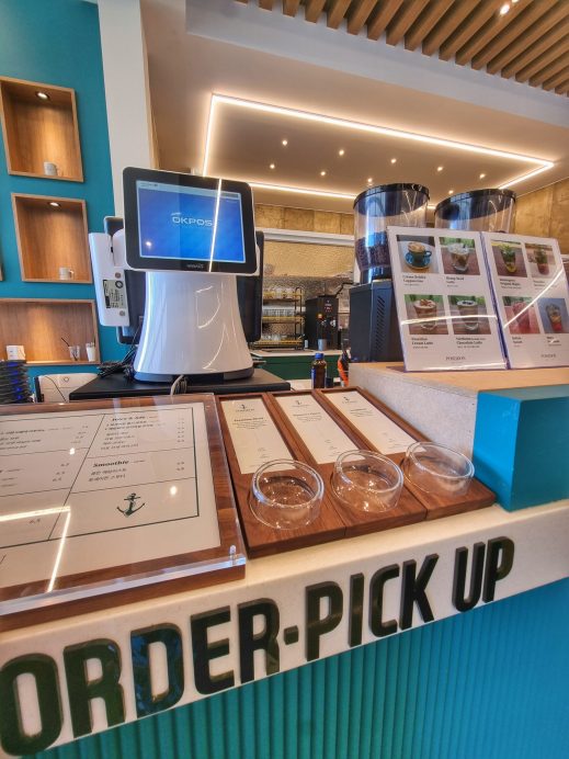 Luckily, the inside of the cafe offers a refreshing coolness. As soon as you step in, you’ll be welcomed by a replica of Poseidon’s trident, sans Jason Mamoa! The trident is also featured in their logo, cups and, plates. It’s nice to see that they use real glasses, plates, and silverware, adding to the pleasant experience.