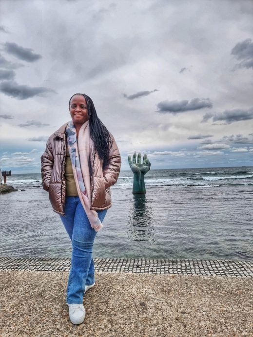 I walked around the beach to the lighthouse and the statues in the large plaza. There is a matching hand directly facing the one in the water. The palms of the hands face each other to symbolize harmony and coexistence. The right hand in the water, the left one is on land. Under it, an eternal flame said to have been lit by sunlight itself. I know this from my research because the only thing I could actually read was “do not sit…” which I gladly heeded.