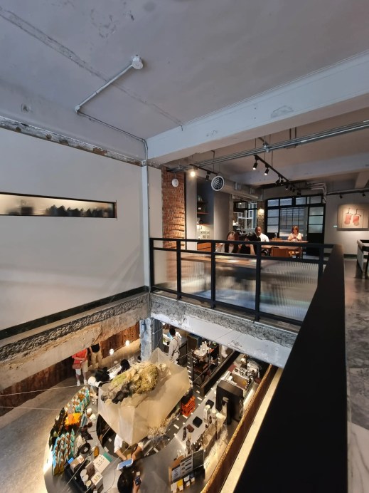 The cafe boasts a spacious interior with high ceilings spanning three or four stories, adorned with large windows that showcase views of both the bustling mall and the lively street. It was also the first cafe with charging stations built into the tables. Since I forgot my charging block, the staff generously loaned me one, so I could finally fully charge my phone. Most Instagrammable cafes in Taipei like this one often come with unique perks like this.